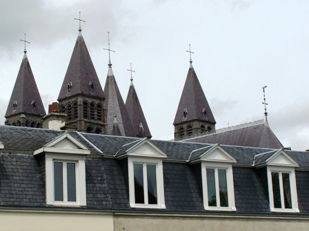 De kathedraal boven de daken |